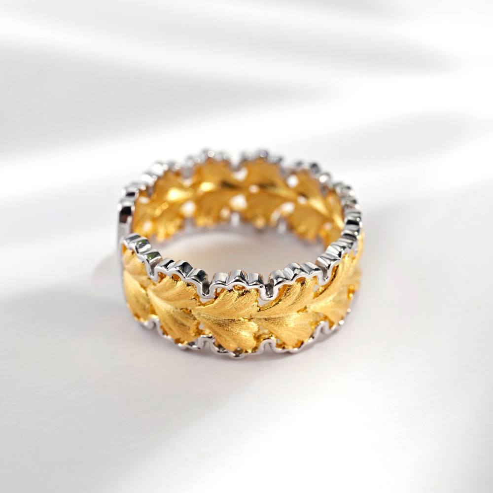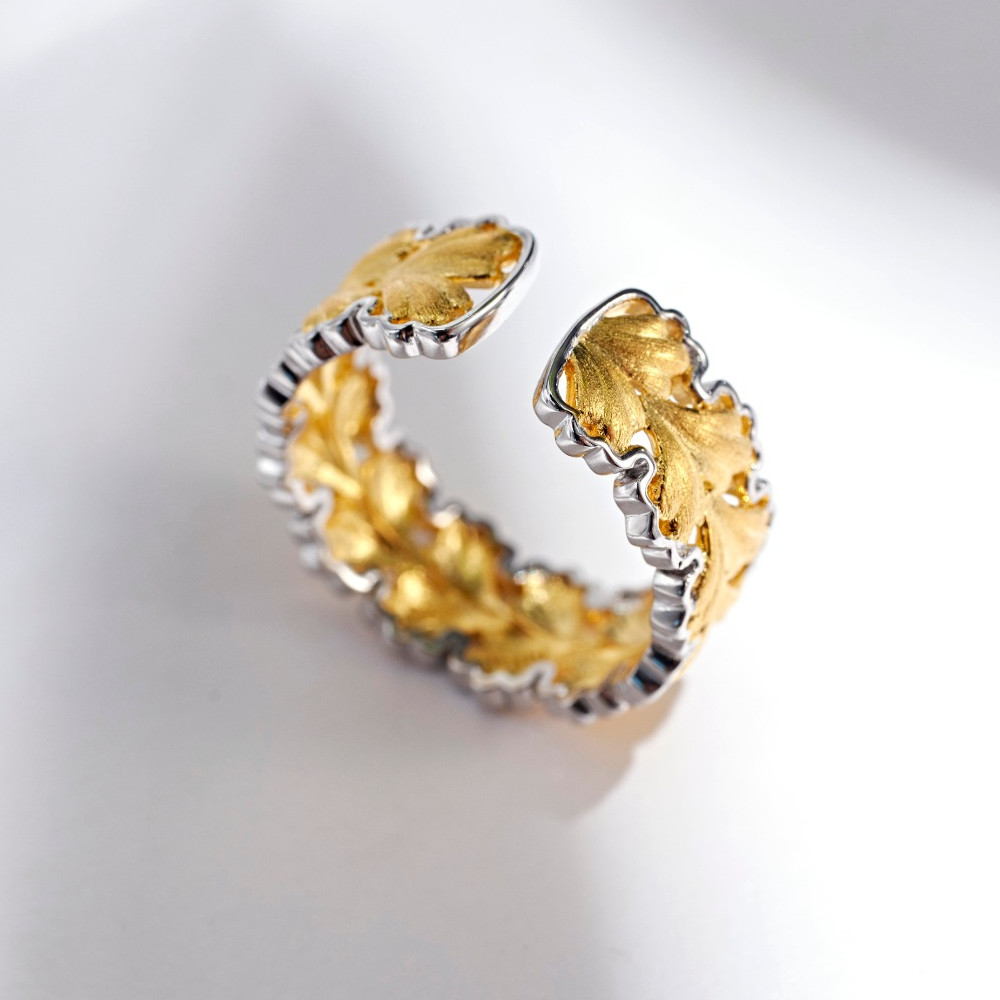 Gold-Plated Ginkgo Leaf Ring for Women