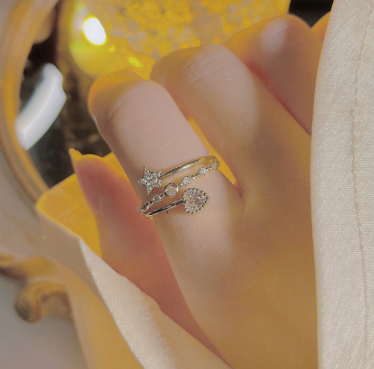 Elevate your style with our Slightly Inlaid Light Luxury Ring, a stunning piece designed for the modern woman. This adjustable ring features a unique five-pointed star style combined with elegant chain elements, making it a perfect accessory for any occasion.