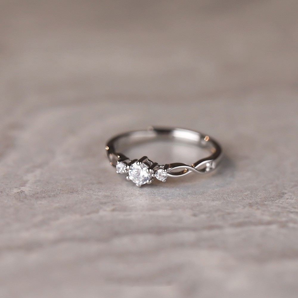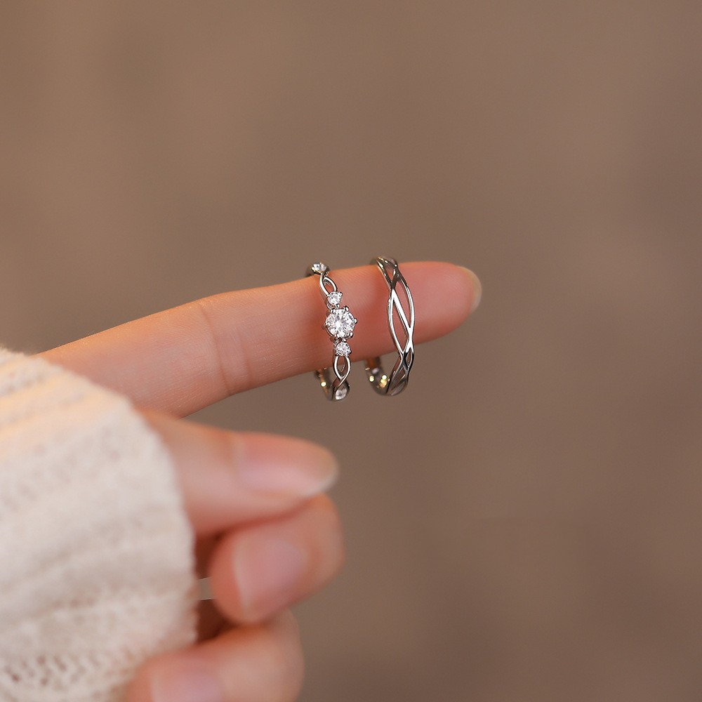S925 Sterling Silver Simple Diamond Zircon Couple Ring