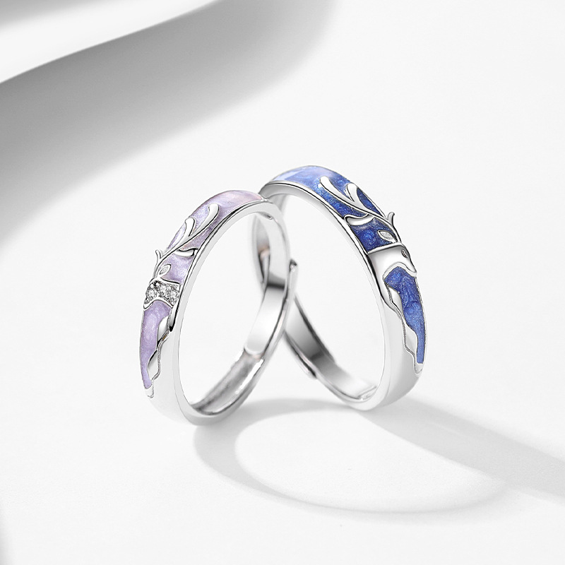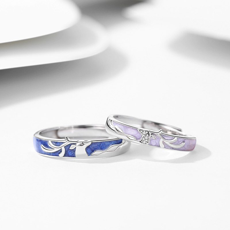Discover the enchanting beauty of love with our stunning Pair of Deer in Sterling Silver Couple Ring. This exquisite piece is crafted from high-quality sterling silver and elegantly inlaid with shimmering zircon, making it a perfect symbol of your bond.